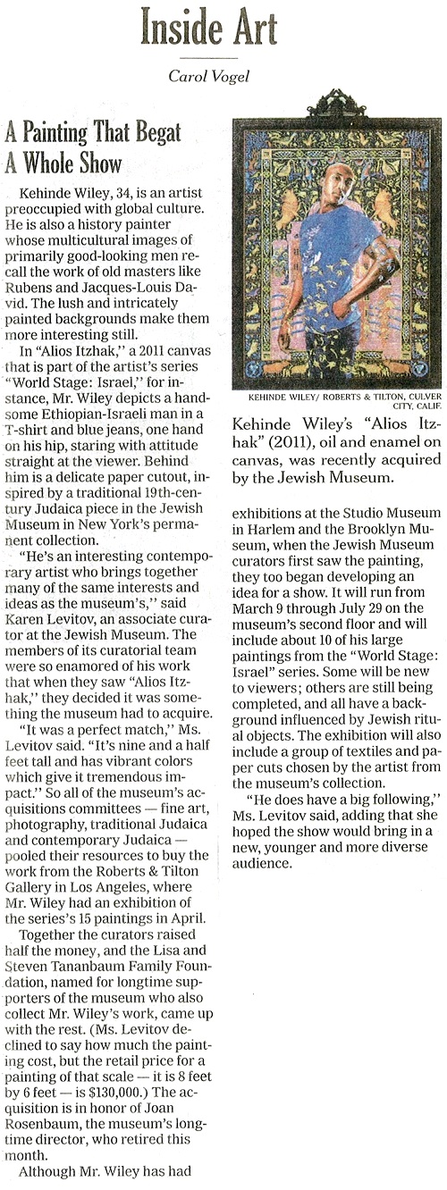 CLIP ART: Kehinde Wiley / NYTimes / September 16, 2011