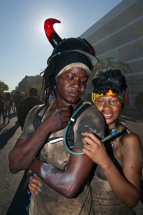 The artist started photographing J’Ouvert in Brooklyn New York because it reminded him of the things that scared him as a boy. This traditional part of Carnival starts around 2:00 in the morning and continues with the colorful costumes, until the Brooklyn Carnival begins at 11 AM, that morning.