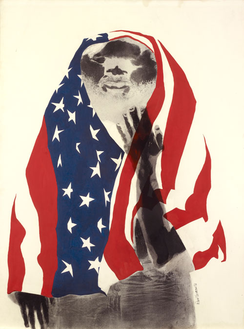 | David Hammons. America the Beautiful, 1968. Lithograph and body print. 39 x 29 1⁄2 in. (99.1 x 74.9 cm). Oakland Museum, Oakland Museum Founders Fund. |
